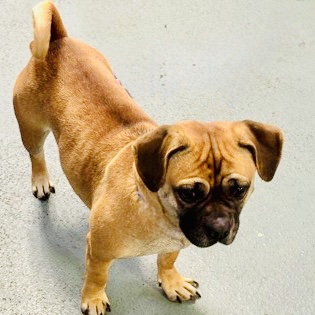 She’s a fun-loving, friendly girl who adores her walks and would love a big fenced yard to zoom around in. Autumn’s a bit larger than your average Pug (we like to say she’s fun-sized plus!), so she’d do best in a home without very small children — she might love them a little too enthusiastically.