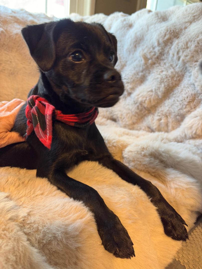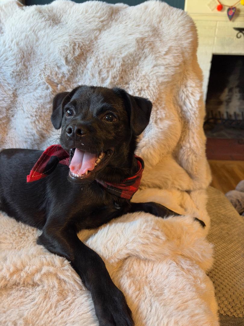 At just 9 months old, Beaumont is the perfect blend of playful puppy and polite little gentleman. This handsome pug mix has the look of a tiny lab, giving him a unique and absolutely irresistible charm.