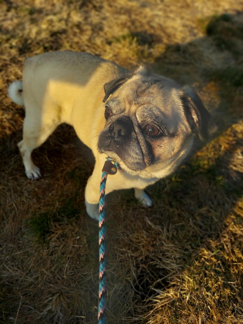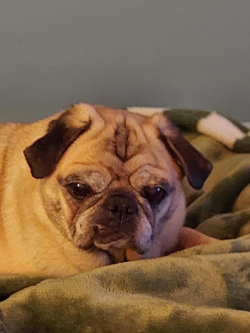 Bugsy is a lap dog, he's always looking for pets and praise. He's a happy dog and loves to chew on stuffed animals. Has some hind end weakness, but it doesn't slow him down. Good with other dogs. Dog door trained!