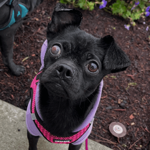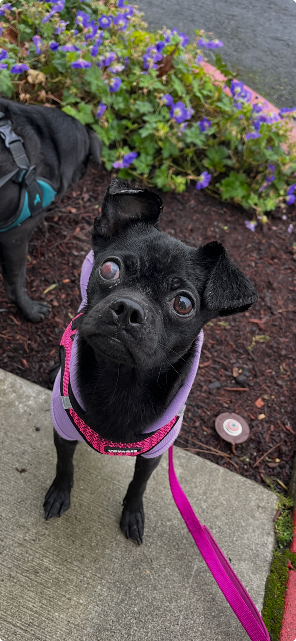 Ember is a tiny pug mix who came to us with less than 24 hours to live. Abandoned, overlooked, and hurting, she was rescued just in time — and from the moment she was safe, she showed us exactly who she is.