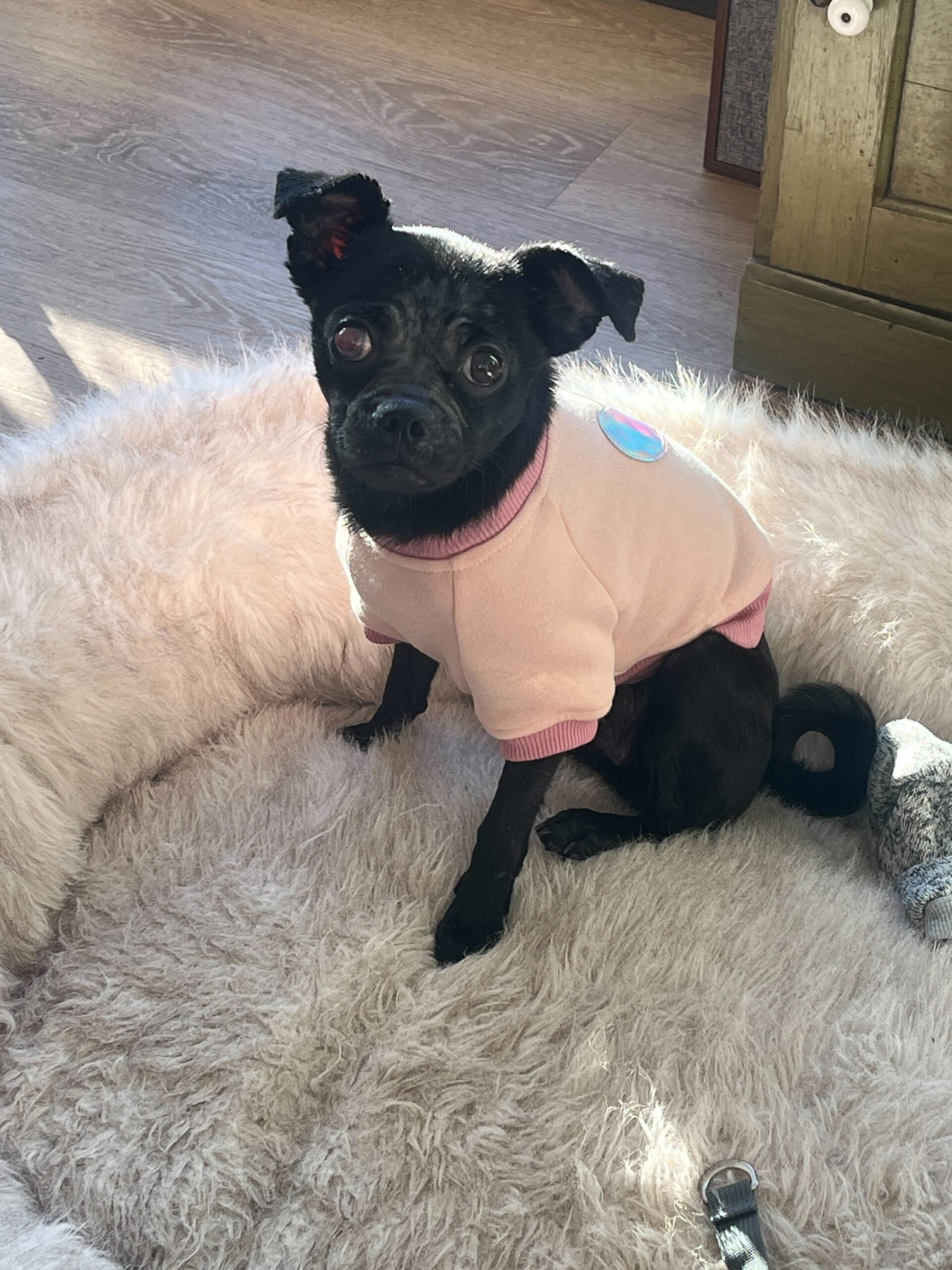 Ember is pure love in a small body. She doesn’t ask for much… just a warm lap, gentle snuggles, and the comfort of being close to her people. She is playful, sweet, and endlessly grateful, the kind of dog who settles into your arms as if she’s always belonged there.