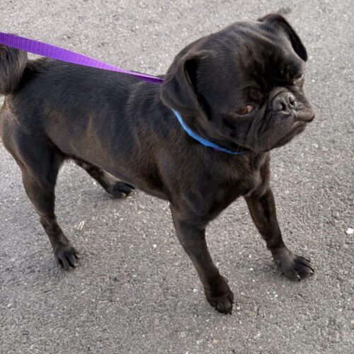 Franklin is the total pug package: adorable, friendly, playful, and guaranteed to make your heart melt at least three times a day. This sweet boy has a soft spot for kids, loves playing with other dogs, and never turns down a good snuggle.
