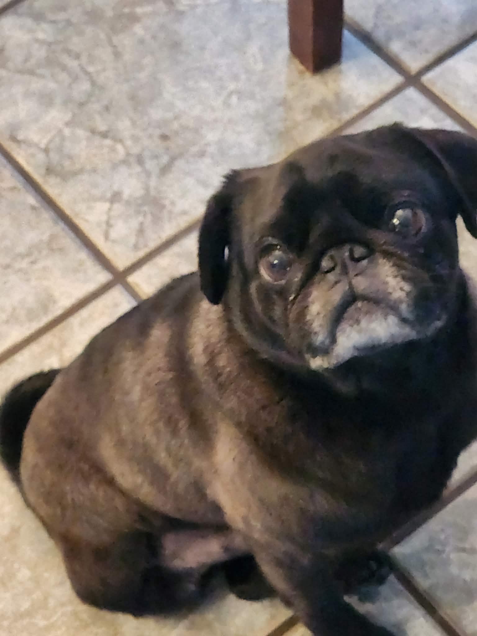 He has settled in extremely well here with the fake parents and is as calm and loving as any pug.  He isn't barky but has helped his foster brother sound the alarm when the coyotes started singing in the back pasture.  So brave!  He is going to make someone an excellent companion.