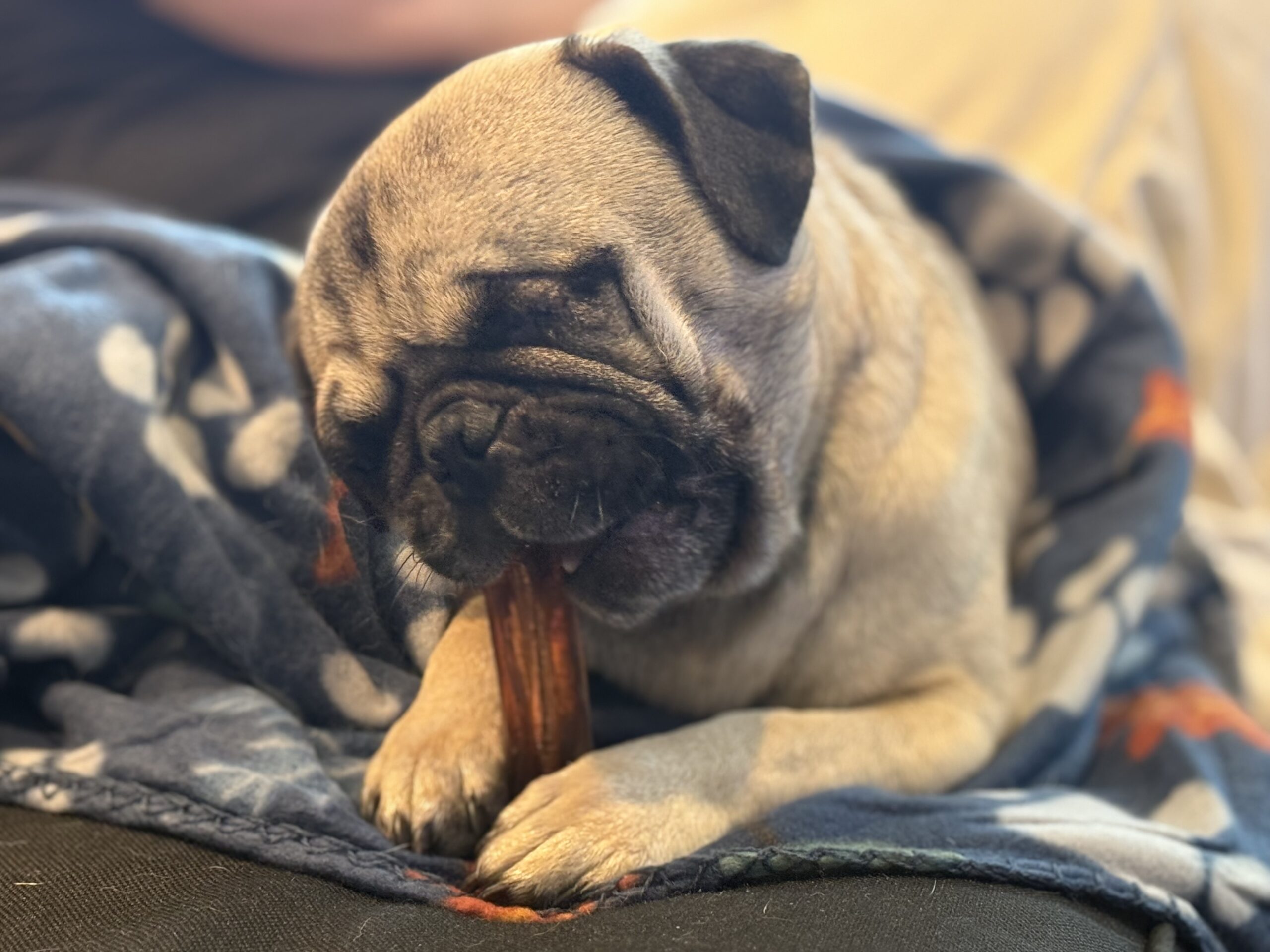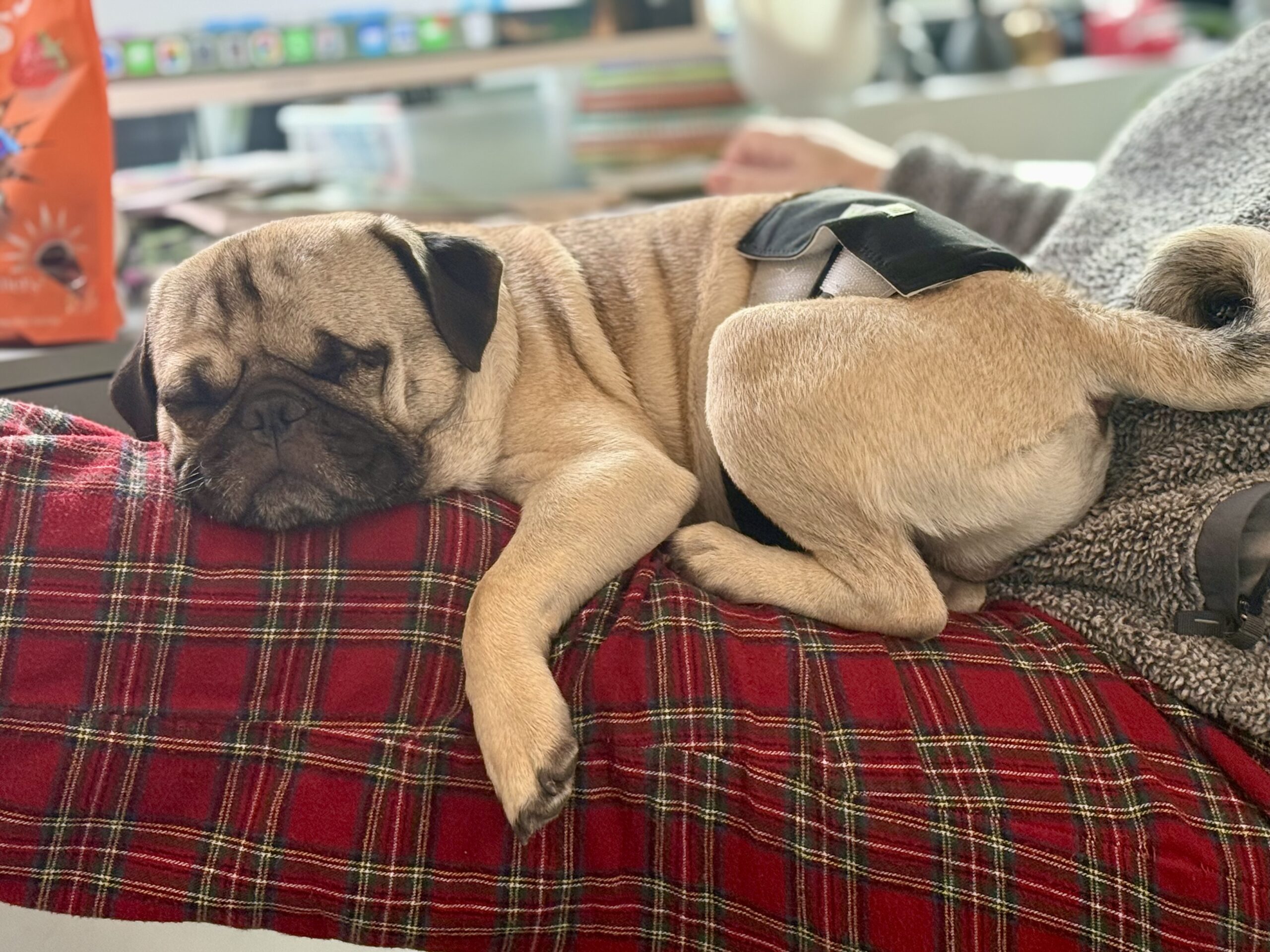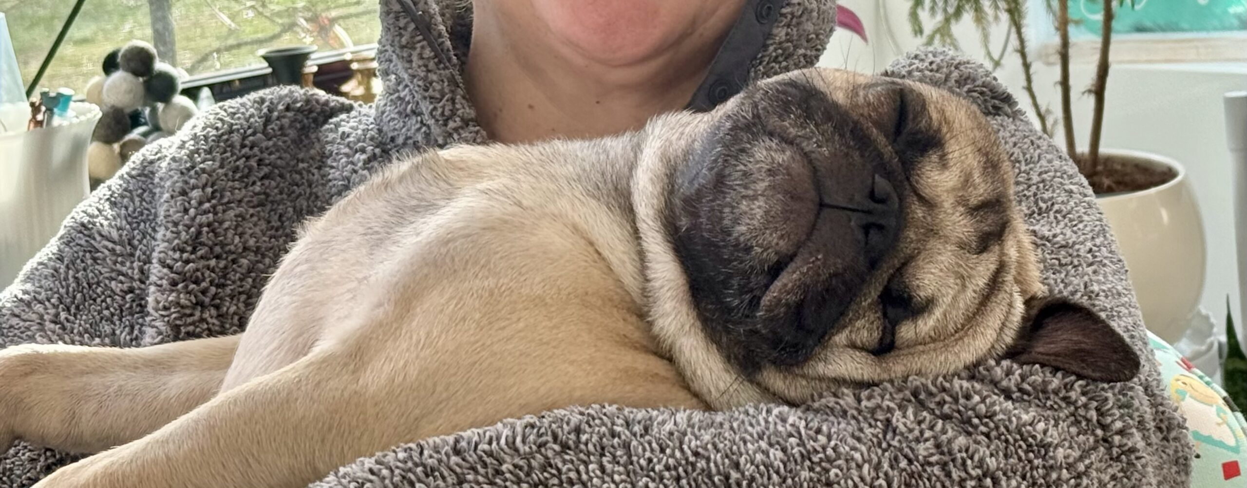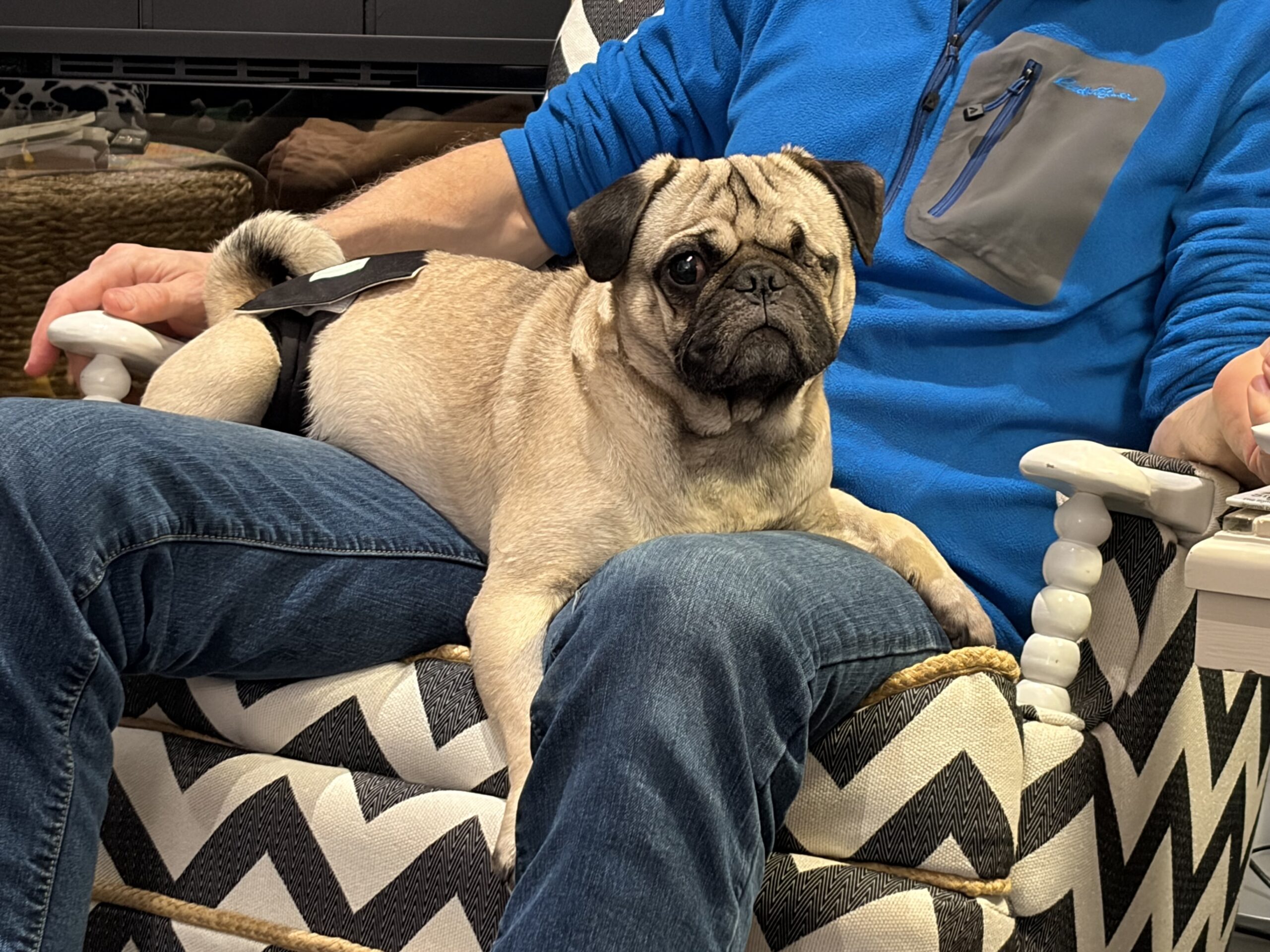 One-Eyed Jax is a smaller-sized pug with a signature sweet side-eye and a heart full of joy. He loves the park, adores other dogs, and plays with all the enthusiasm of a young pup who knows how to have fun.
