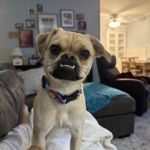 Lue-Anne is a sweet, tender-hearted pug mix who’s been through more than any dog should. Rescued from a high-risk shelter, her soft eyes tell a story of survival and strength. Despite her rough past, she hasn’t lost her gentle spirit. If you’re looking for a loyal companion who will treasure every moment with you, Lue-Anne is your girl. Give her the forever home she’s been dreaming of, and you’ll gain the sweetest friend for life.