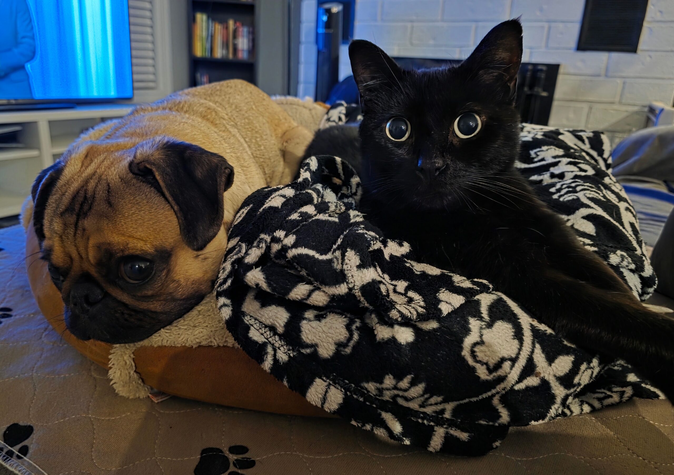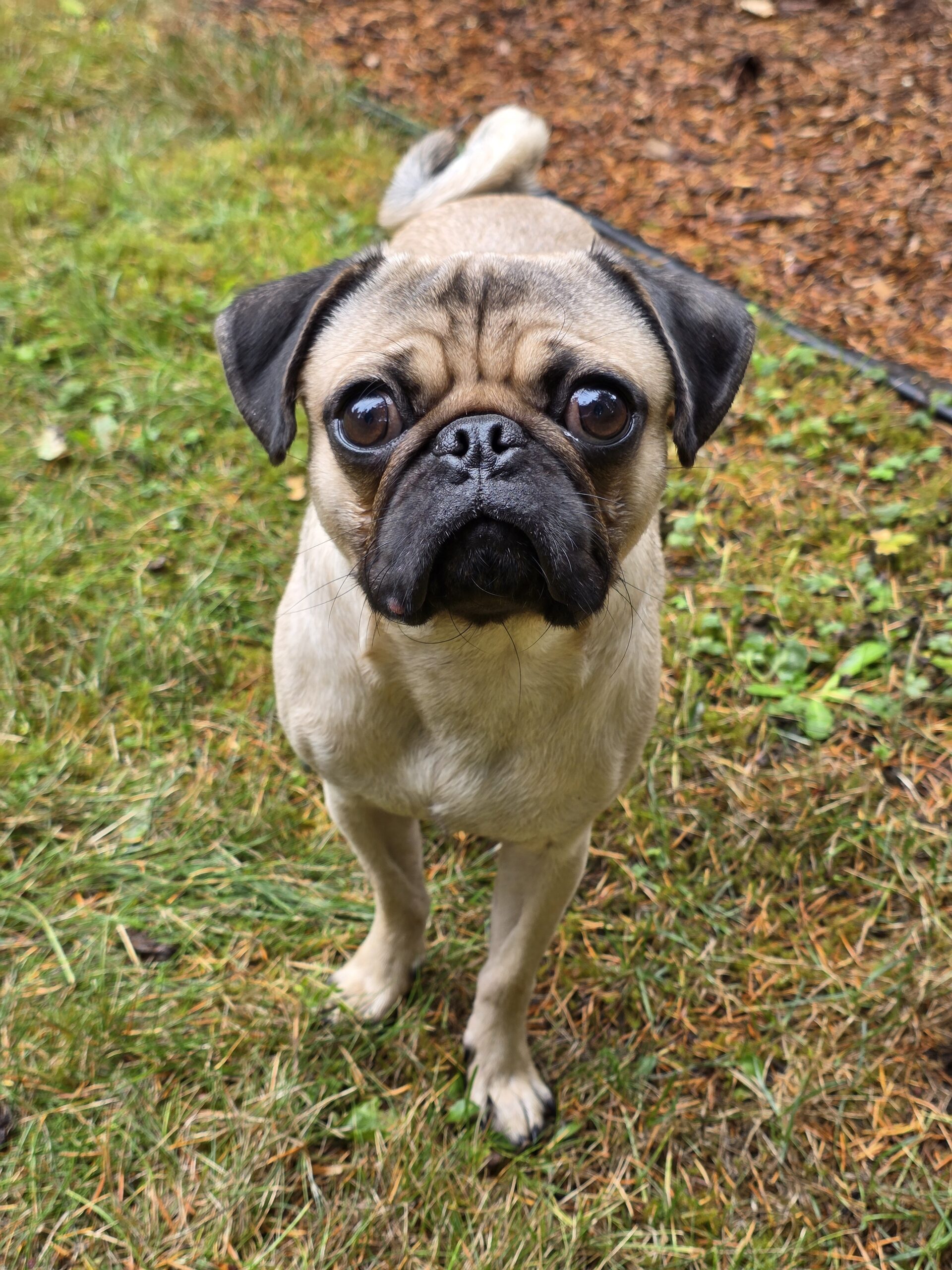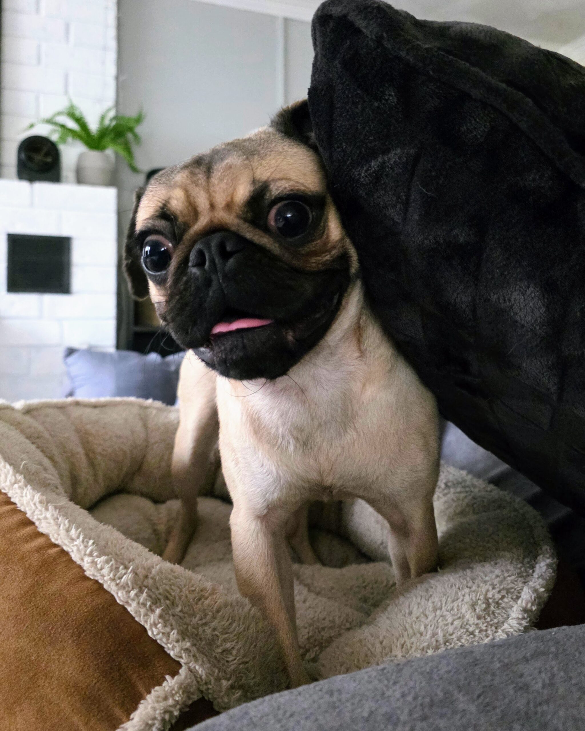 Hi, my name is Max! If you've been searching for a sweet, silly, wigglebutt to be your new furry best friend - congratulations, you've found me! I'm a young pug who loves playing with with toys, giving kisses, and exploring the world and meeting new people. I love *everybody* - grown-ups, kids, other dogs .. even cats! I came to Church of Pug as an owner-surrender, but their loss could be your gain. My Foster Mom says I'm the absolute BEST BOY. I know not to go potty in the house and haven't had a single accident since I've been here. I also sleep quietly without a fuss in my crate throughout the night. When my Foster Mom goes to work, she gives me a lick-it mat with peanut butter, which I eat happily and then curl up in my bed for a nice nap until she gets back. I like it here, but I cannot wait to find my forever family! Could that be you??