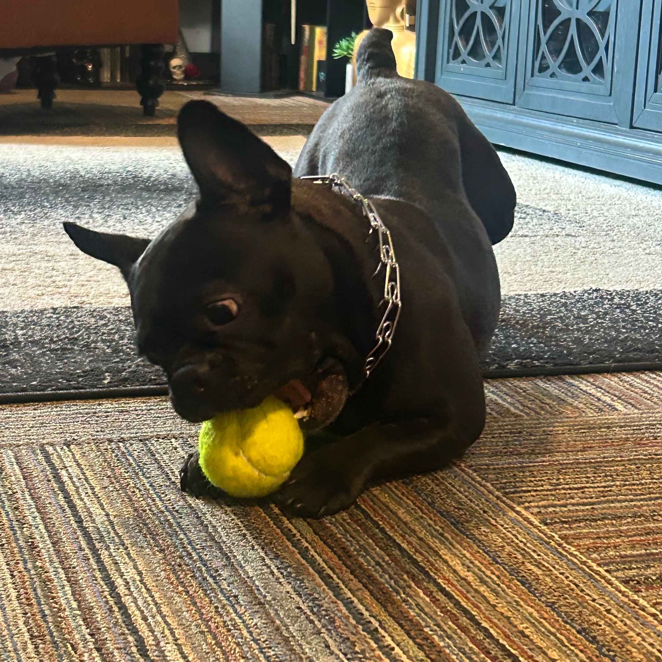 Because of her history, we’re requiring a home with no children—both for safety and liability reasons. Tiny is a bit of a diva and will do best in an only dog home with someone experienced with French Bulldogs (or other strong-willed breeds) who can provide structure, exercise, and lots of love.
