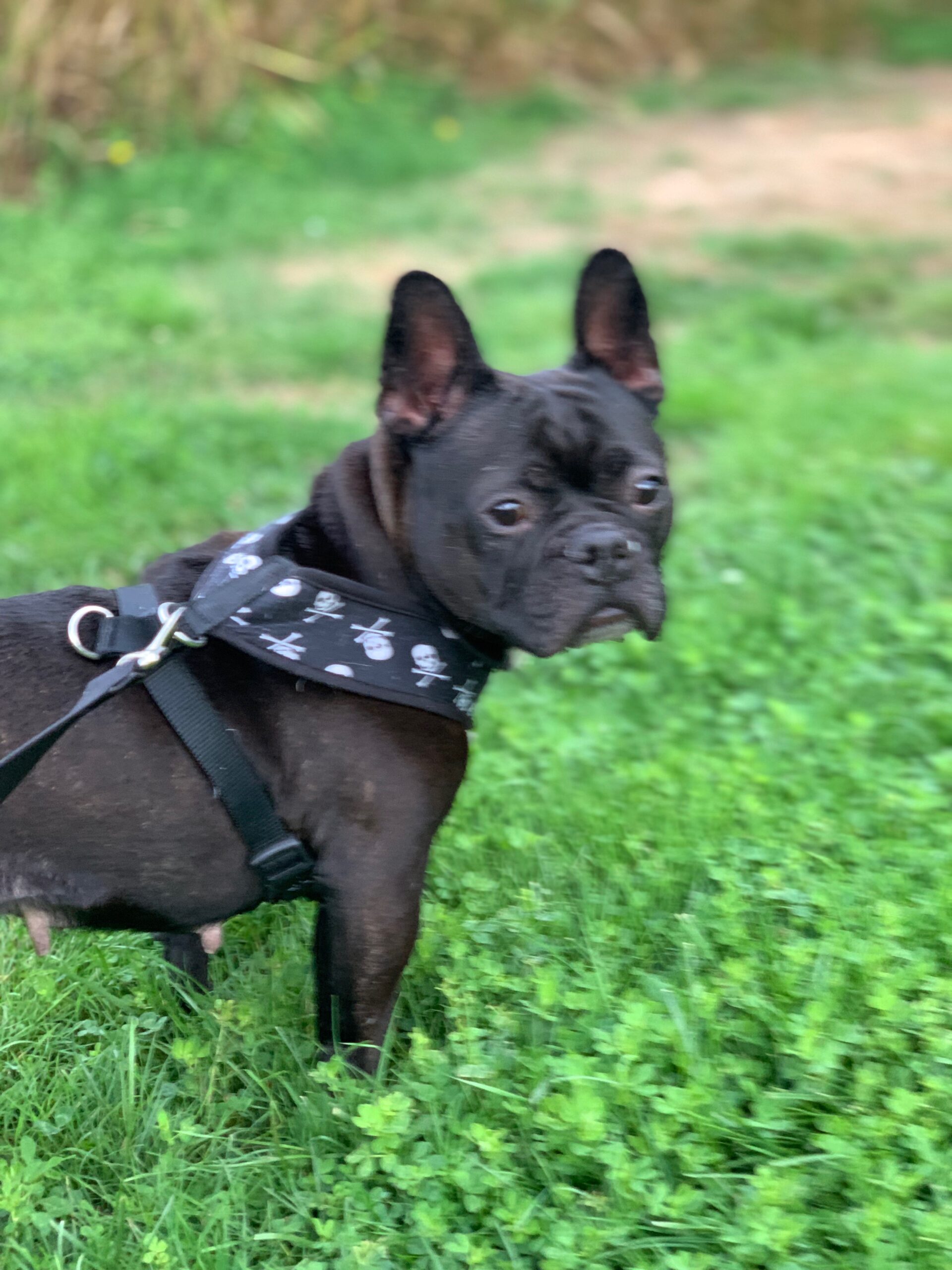 Don’t let the name fool you—this little Frenchie comes with a big personality! Tiny is a young girl full of sass, wiggles, and Frenchie attitude. She’s hilarious, stubborn, and totally endearing in her own way.