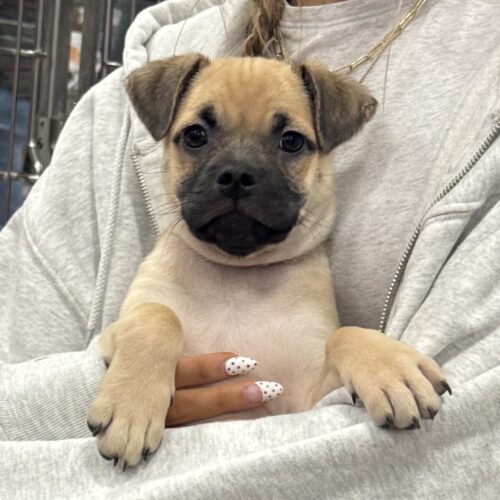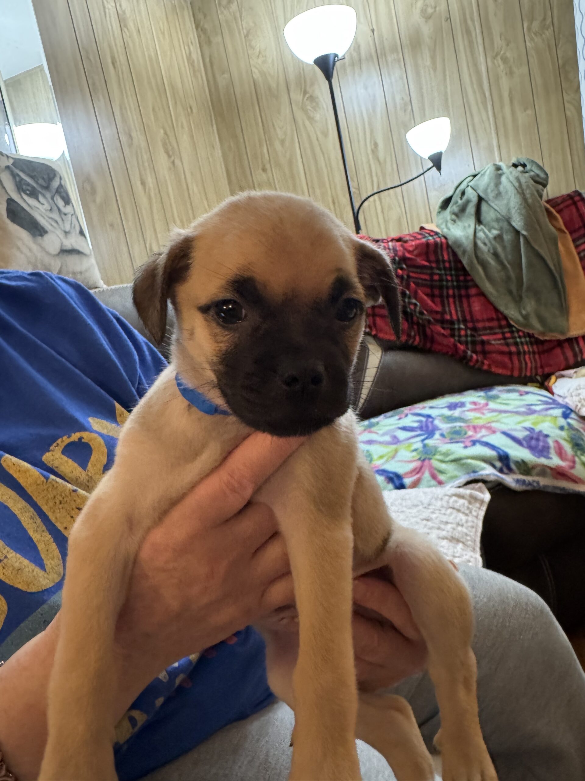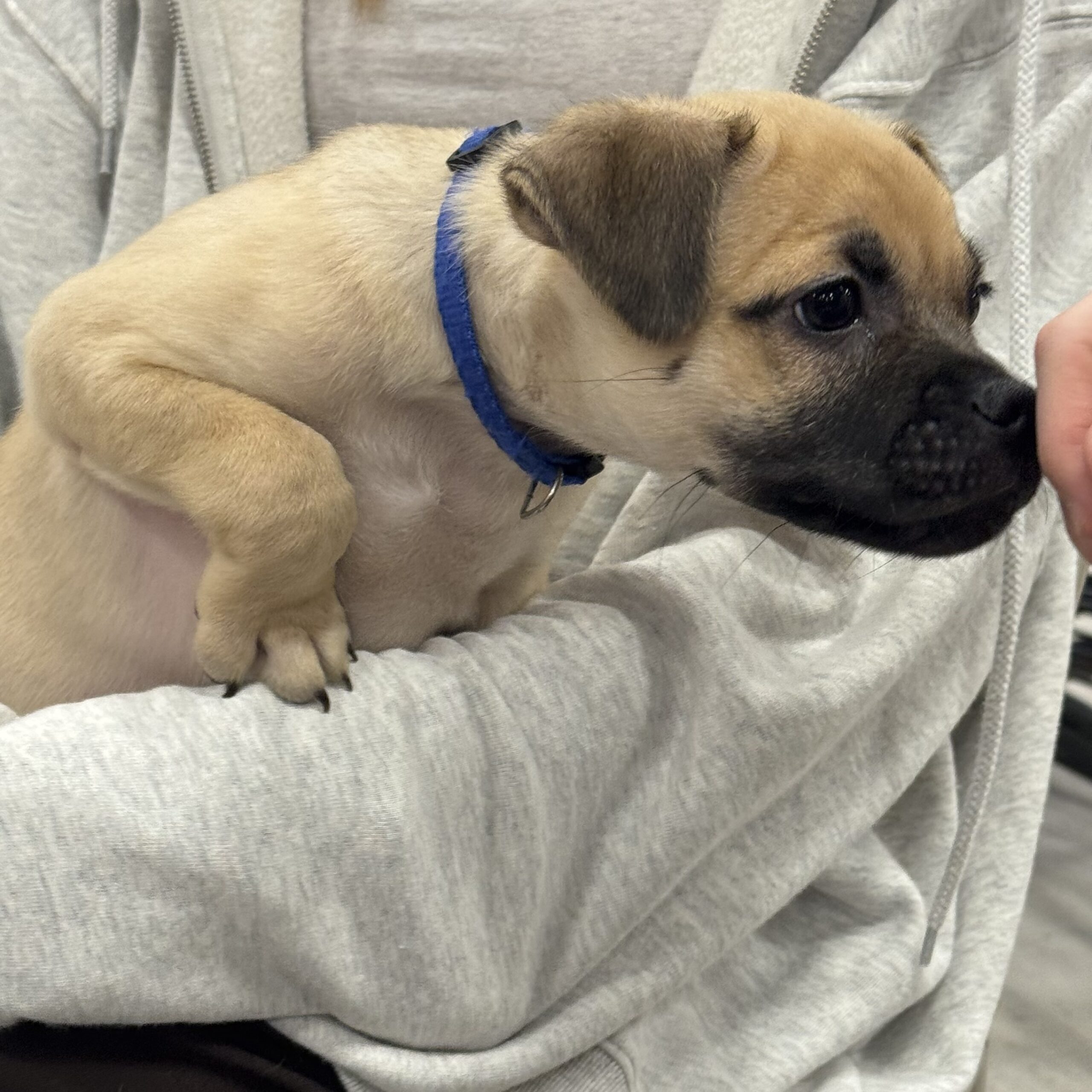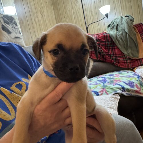 Willoughby is all soft snuggles, curious wiggles, and sweet puppy kisses. He has that wonderful way of trotting after his people like he’s afraid to miss a single moment, then curling up close when it’s time to rest. Everything is new and exciting to him, and he approaches the world with gentle confidence and a happy little heart.